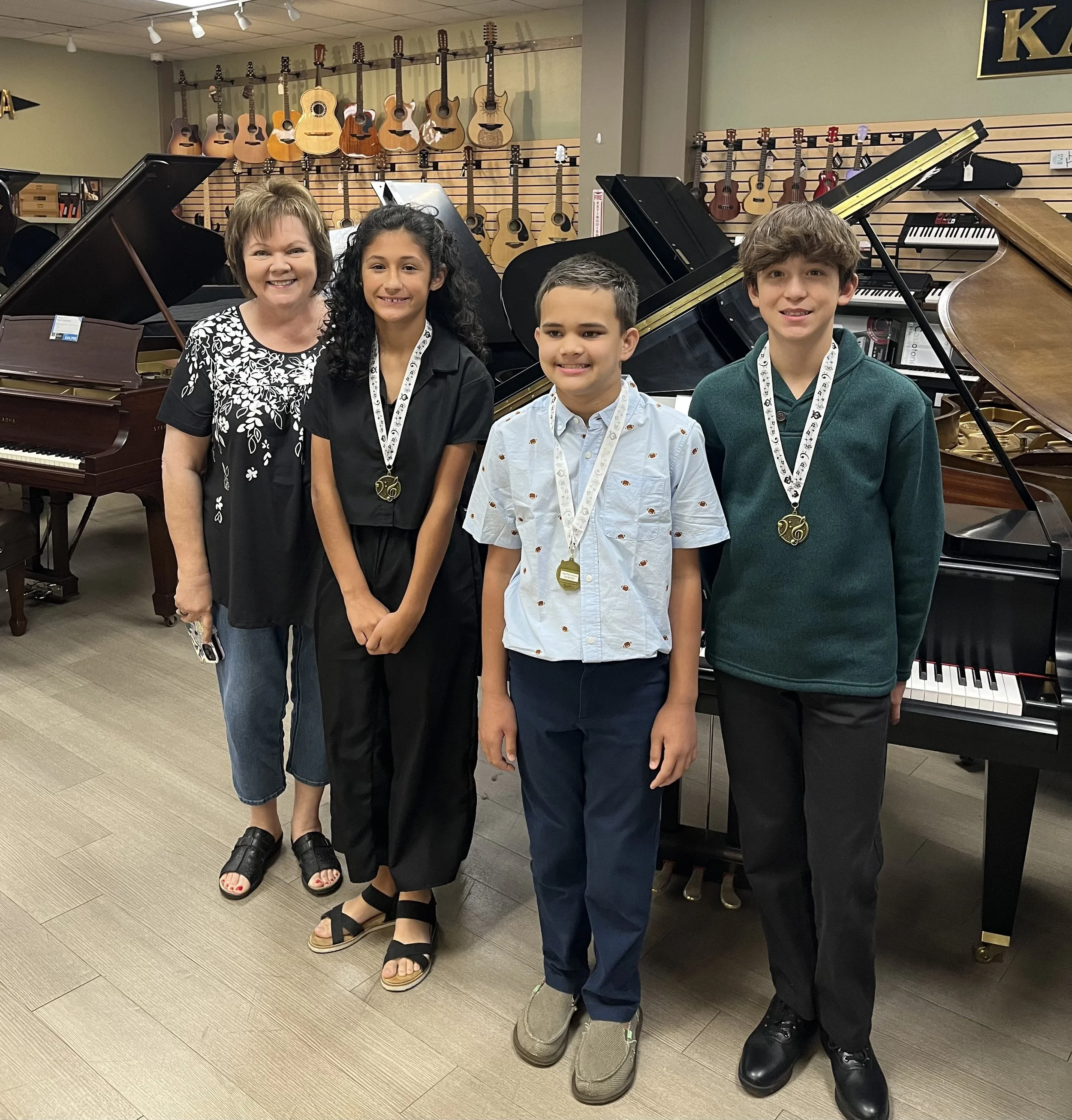 Harmony Road students performed in MTAC’s annual Jazz Pop Festival on November 10, 2018. The event was held at California Keyboards piano store. Even, Kendra, Natalie, Andrew, and Guennevierre each received a medal. Kendra received 2 trophies for her two high-scoring performances.