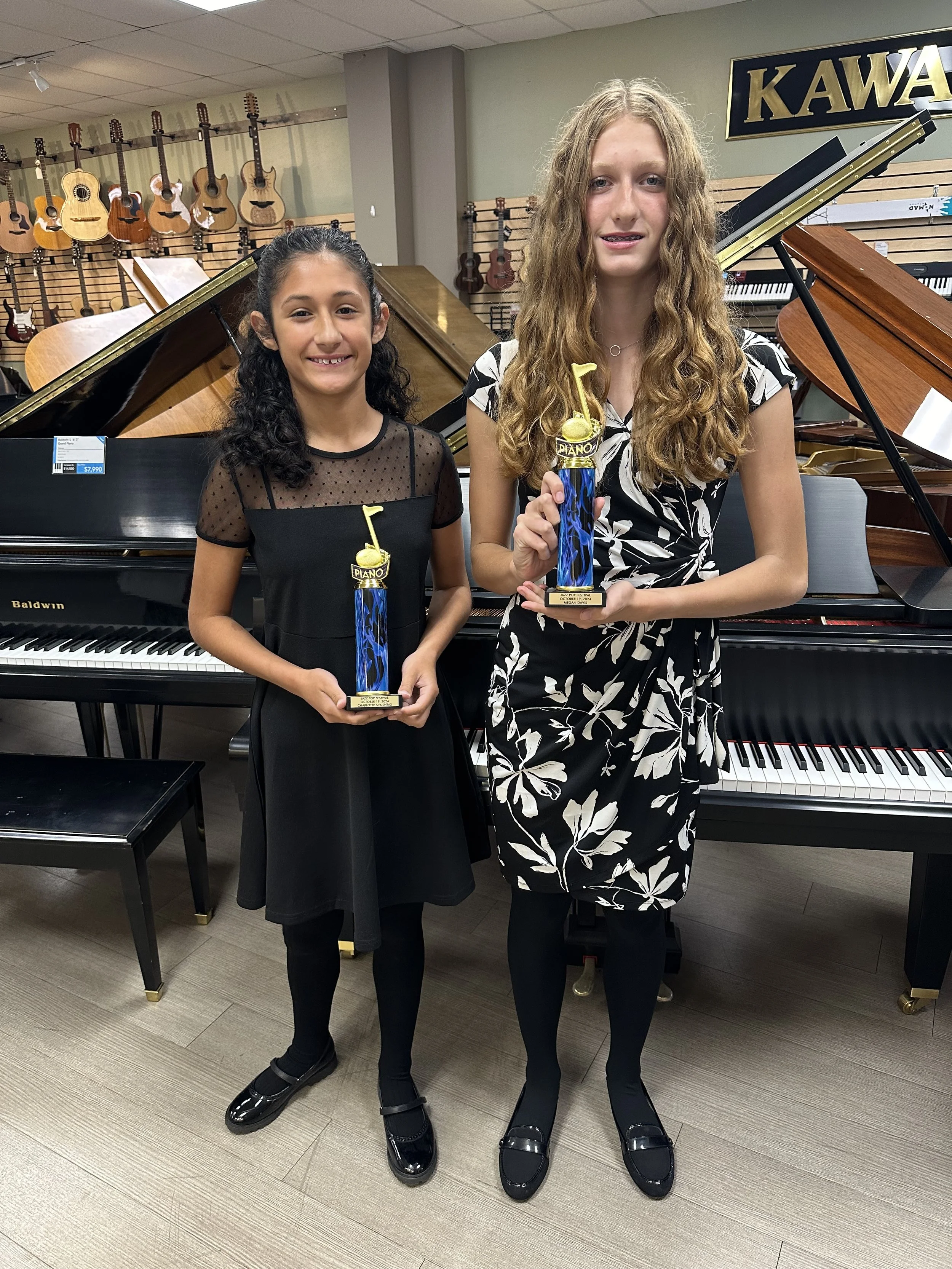 Certificate of Merit is one of our annual evaluated events. Students perform repertoire, technique, sight reading and ear training. 13 Harmony Road students participated this year. Students Lara C. and Lucas A. scored 100% on their theory exam and received a trophy! We celebrated with an ice cream party.